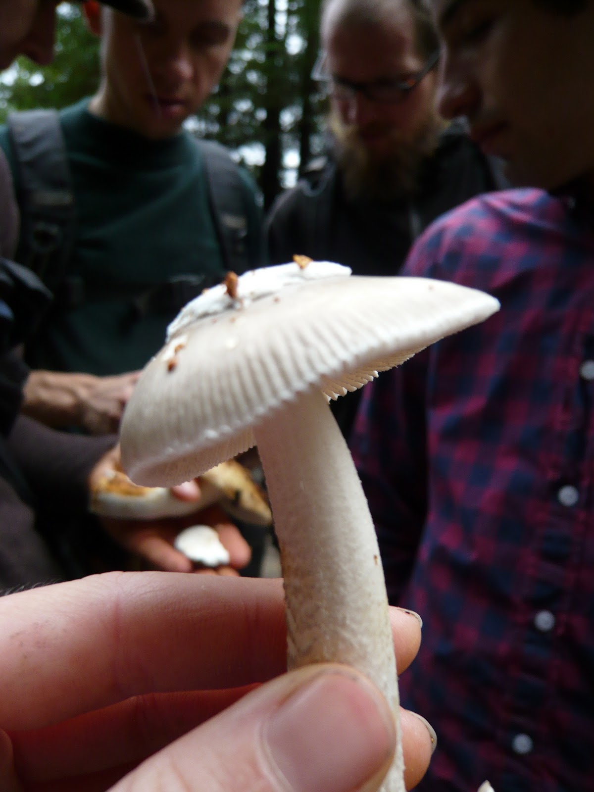 Sunday afternoon I spent hiking with friends in Jackson Forest in search of mushrooms. We scrambled up and down muddy embankments and dug through the duff to uncover an endless variety of mushrooms, many of them edible. We found pig's ears, shrimp russula, chanterelle and the hard to find black trumpet. At first the mushrooms are hard to spot, but once you know what you're looking for, you can't look down without seeing the colorful and varied caps. We didn't find any matsutakes, but we did find a Kawasaki, as you'll see in the last photo.